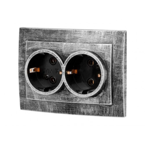 Розетка 2-ая (скрытая, с/з) серебро, Стандарт, Юпитер