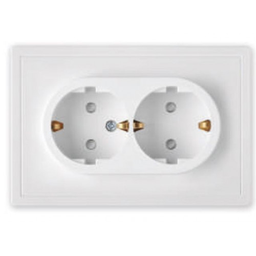 Розетка 2-ая (скрытая, с/з, со шторками) белая, Carre, BYLECTRICA