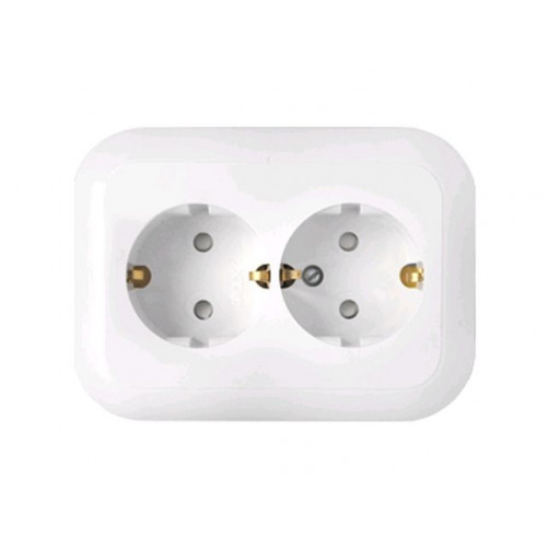 Розетка 2-ая (скрытая, с/з, со шторками) белая, Гармония, BYLECTRICA