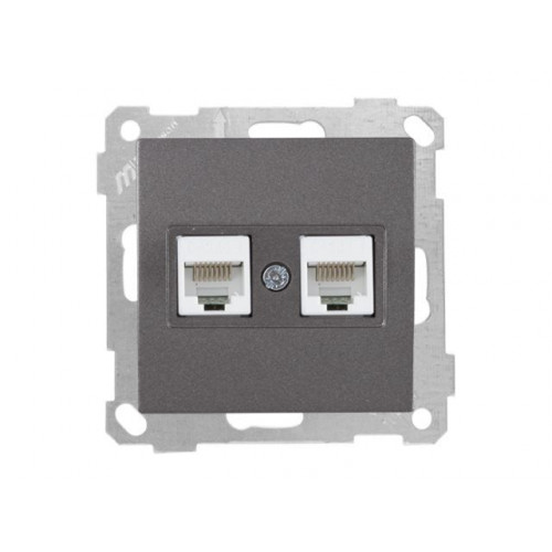 Розетка компьютерная 2xRJ45 (Cat5e) дымчатая, ELITRA, MUTLUSAN