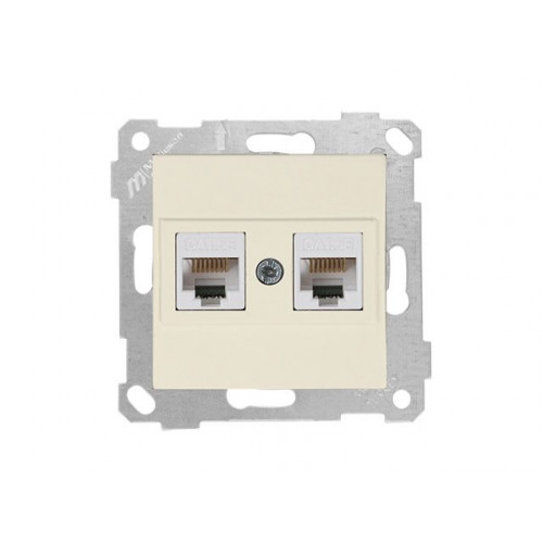 Розетка компьютерная 2xRJ45 (Cat5e, скрытая, без рамки) кремовая, RITA, MUTLUSAN