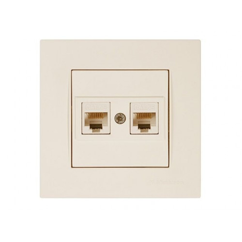 Розетка компьютерная 2xRJ45 (Cat5e, скрытая) кремовая, RITA, MUTLUSAN