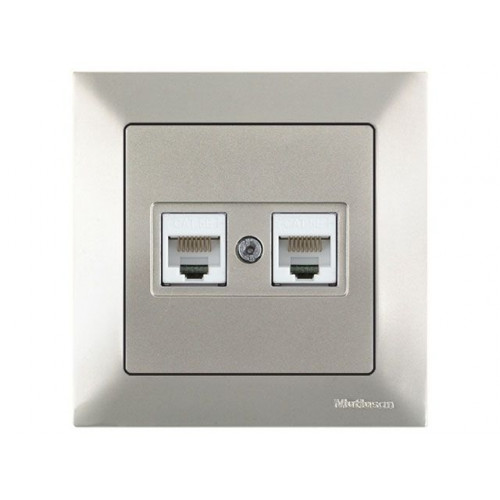 Розетка компьютерная 2xRJ45 (Cat5e, скрытая) титан, DARIA, MUTLUSAN