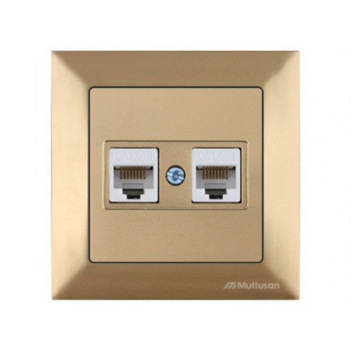 Розетка компьютерная 2xRJ45 (Cat5e, скрытая) золото, DARIA, MUTLUSAN