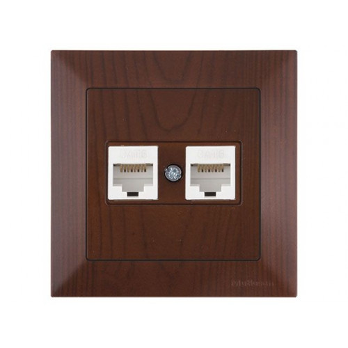 Розетка компьютерная 2xRJ45 (Cat6, скрытая) орех, DARIA, MUTLUSAN