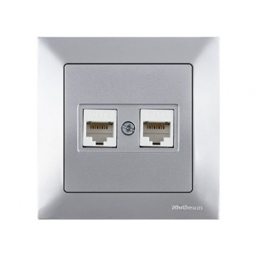 Розетка компьютерная 2xRJ45 (Cat6, скрытая) серебро, DARIA, MUTLUSAN