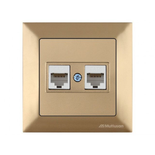 Розетка компьютерная 2xRJ45 (Cat6, скрытая) золото, DARIA, MUTLUSAN