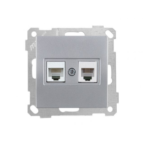 Розетка телефонная + компьютерная (RJ12+Cat5e) серебро, ELITRA, MUTLUSAN