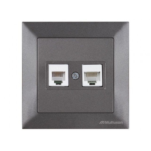 Розетка телефонная + компьютерная (RJ12+Cat5e, скрытая) дымчатая, DARIA, MUTLUSAN