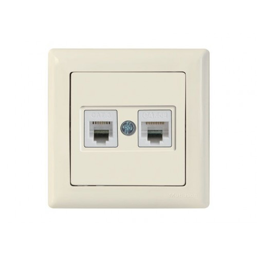 Розетка телефонная + компьютерная (RJ12+Cat5e, скрытая) кремовая, DARIA, MUTLUSAN