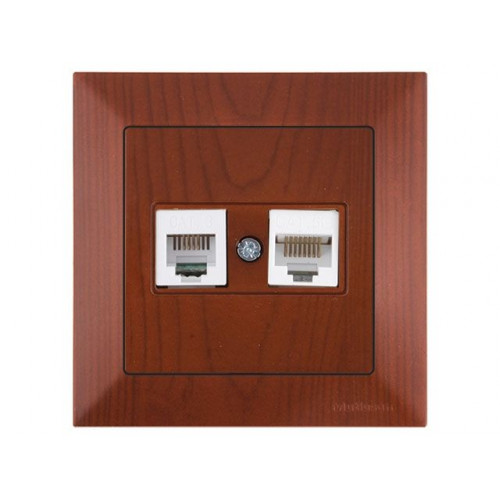 Розетка телефонная + компьютерная (RJ12+Cat5e, скрытая) вишня, DARIA, MUTLUSAN