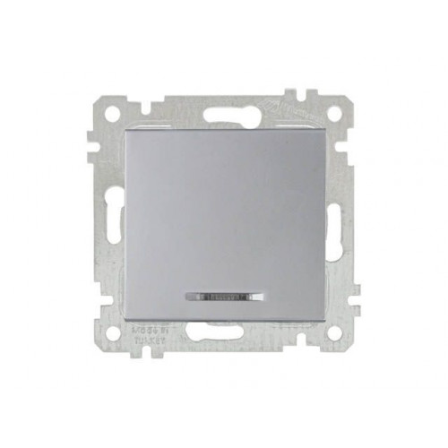 Выключатель 1-клав. (с подсветкой, скрытый, без рамки, винт. зажим) серебро, RITA, MUTLUSAN
