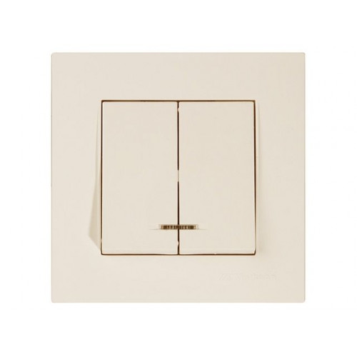 Выключатель 2-клав. (c подсветкой, скрытый, пруж. зажим) кремовый, RITA, MUTLUSAN