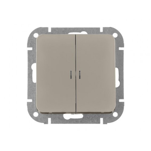 Выключатель 2 клав. (cкрытый, 10А) со световой индикацией песочный, Astrum, BYLECTRICA