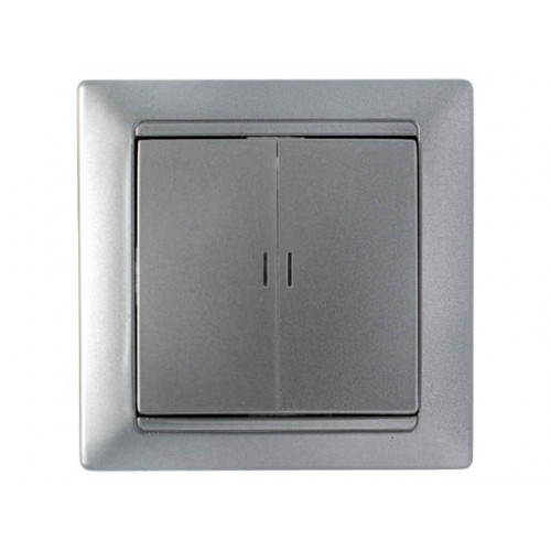 Выключатель 2 клав. (cкрытый, 10А) со световой индикацией, серебро, Стиль, BYLECTRICA