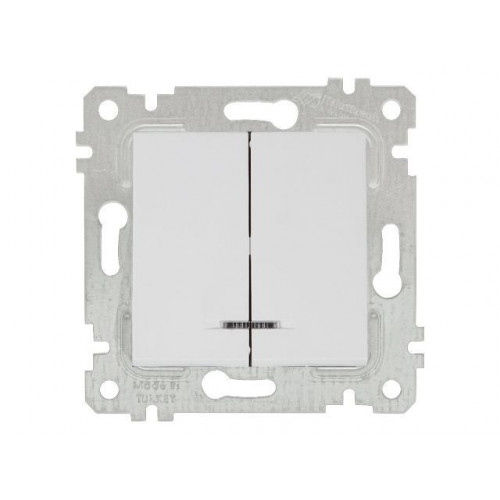 Выключатель 2-клав. (с подсветкой, скрытый, без рамки, винт. зажим) белый, RITA, MUTLUSAN