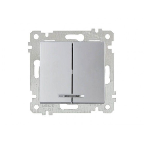 Выключатель 2-клав. (с подсветкой, скрытый, без рамки, винт. зажим) серебро, RITA, MUTLUSAN