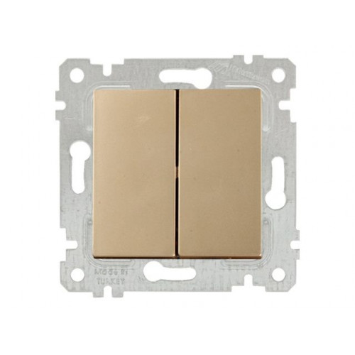 Выключатель 2-клав. (скрытый, без рамки, пруж. зажим) золото, RITA, MUTLUSAN