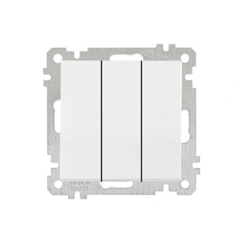 Выключатель 3-клав. (скрытый, без рамки, пруж. зажим) белый, DARIA, MUTLUSAN