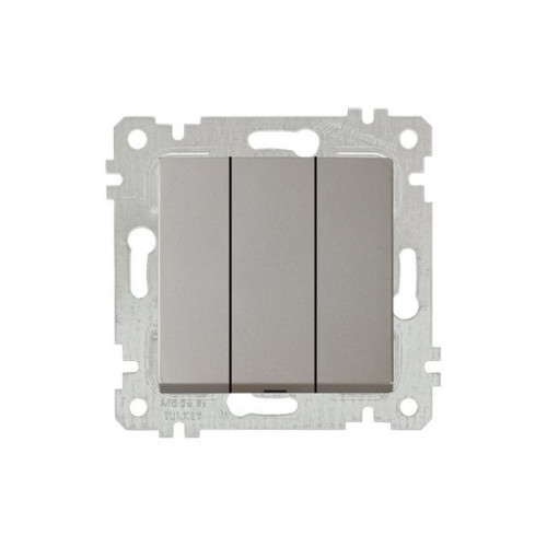 Выключатель 3-клав. (скрытый, без рамки, пруж. зажим) титан, RITA, MUTLUSAN