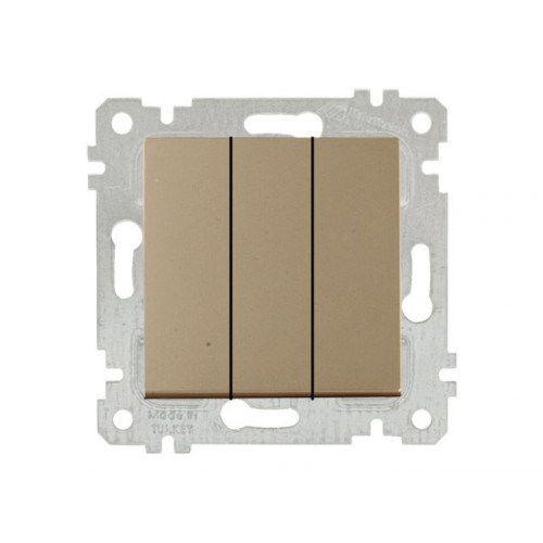 Выключатель 3-клав. (скрытый, без рамки, пруж. зажим) золото, RITA, MUTLUSAN