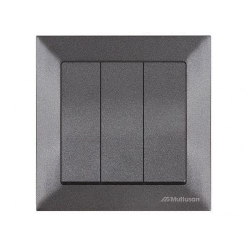 Выключатель 3-клав. (скрытый, винт. зажим) дымчатый,, DARIA, MUTLUSAN