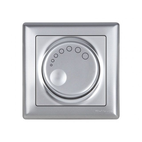 Выключатель поворотный с подсветкой (диммер) (скрытый, винт. зажим, 600Вт) серебро, DARIA, MUTLUSAN