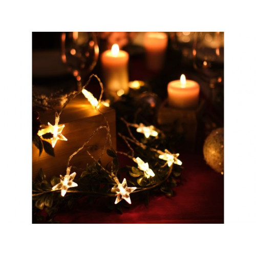 Светодиодная гирлянда <Звездочки> длиной 1,5 метра — яркая, запоминающаяся, оригинальная, по-настоящему новогодняя — красивый декор для интерьера в любом стилевом решении. 10 насадок в виде звезд расположены на гибком кабеле, защищенном изоляцией из прозрачного ПВХ. Степень защиты IP20 предполагает использование изделия в отапливаемых помещениях с умеренной влажностью. 10 диодов светятся в постоянном режиме и питаются от двух батареек типа АА. Гирлянда абсолютно безопасна и может использоваться для оформления детских комнат.