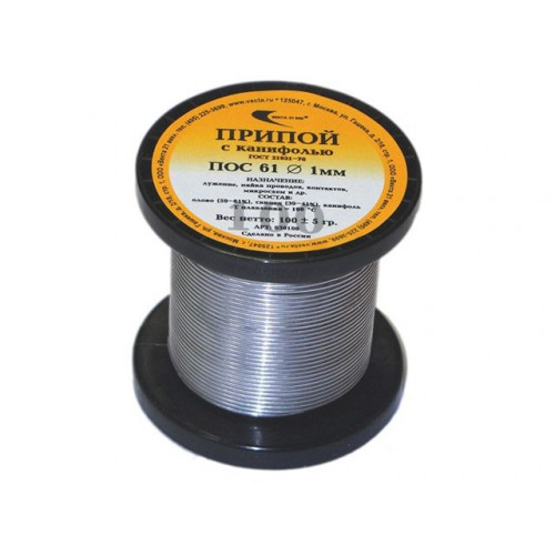 Припой ПОС 61 трубка, катушка ф1мм, с канифолью (100г)