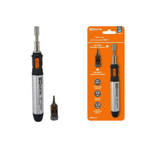 Паяльник автономный газовый ПАГ-1, (3 наконечника: жало, резак, фен), 12 мл "Алмаз" TDM