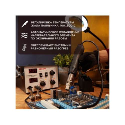 Станция паяльная 2 в 1 паяльник+термофен с цифровым дисплеем, 100-480 °С REXANT