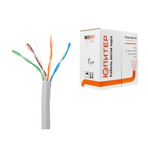 Кабель витая пара U/UTP Cat5E 4х2х24AWG (0.51мм) 305м, медь, внутр. (ПВХ) Юпитер