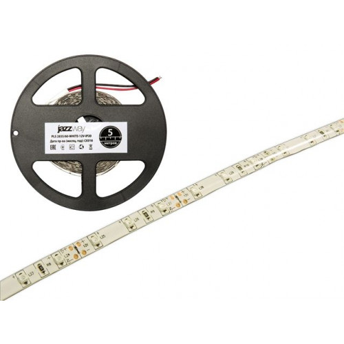 Лента светодиодная PLS 2835/60 (6 Вт/м, 480 Лм/м, IP65, 12В (5 м в уп.) красная JAZZWAY