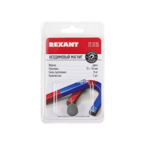 Магнит неодимовый диск 15х10мм сцепление 8 кг (Упаковка 1 шт) REXANT
