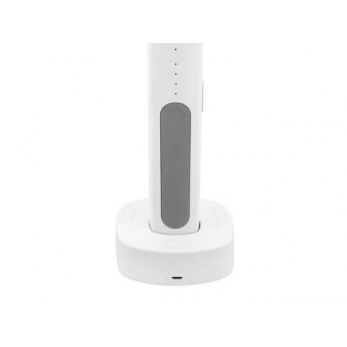 Имеет встроенный аккумулятор, заряжается от станции, которая входит в комплект. Подключается к сети с помощью USB-провода (приобретается отдельно).