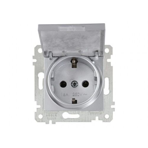 Розетка 1-ая (скрытая, без рамки, с/з, с крышкой) серебро, RITA, MUTLUSAN