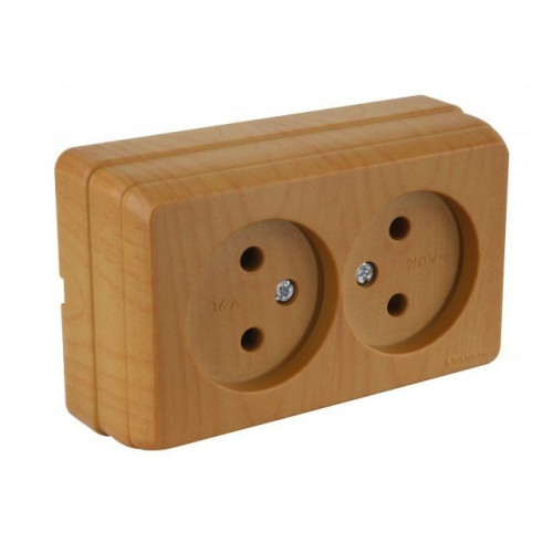 Розетка 2-ая (открытая, б/з) дуб, BRON, MUTLUSAN