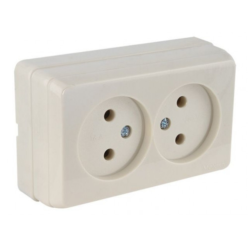 Розетка 2-ая (открытая, б/з, керамика) кремовая, BRON, MUTLUSAN