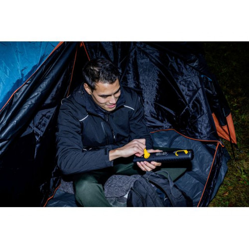 Корпус фонарика прорезиненный, что позволяет пользоваться им в тяжелых условиях,