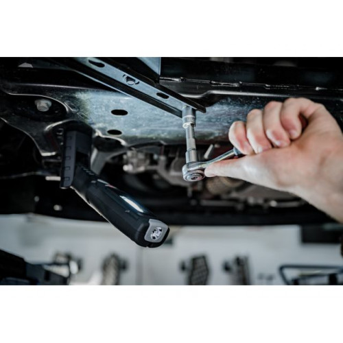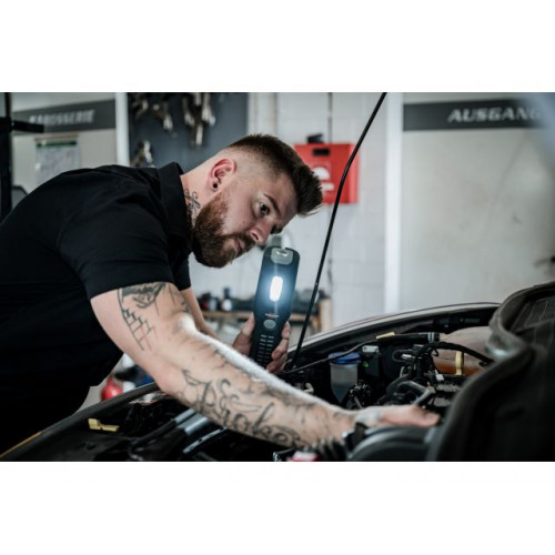 Благодаря переключению уровней (точечный-100%-50%) сверхъярких SMD-светодиодов, светодиодный фонарь для мастерской светит до 10 часов. Зарядка инспекционного фонаря осуществляется через интерфейс USB C и с помощью кабеля для зарядки USB A - USB C, входящего в комплект.