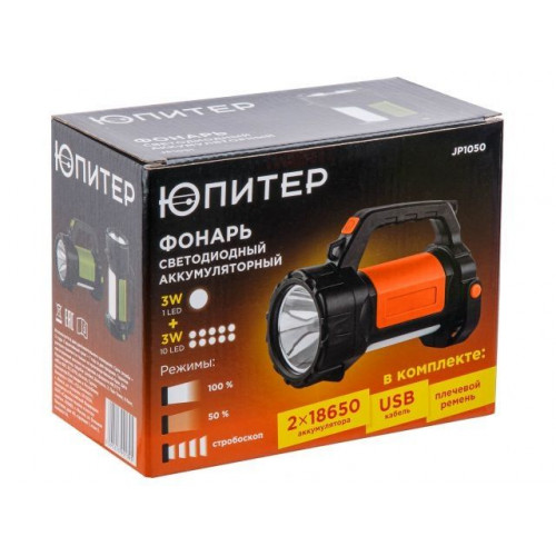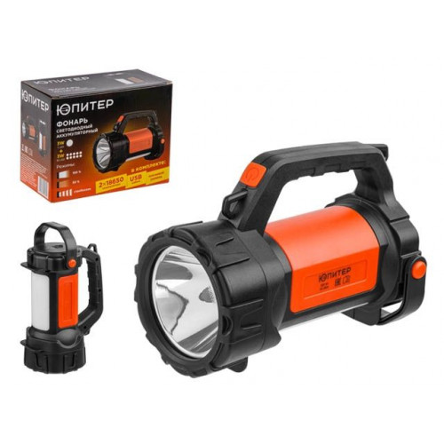 Фонарь светодиодный аккум. 3Вт+3Вт (оранж.) ЮПИТЕР