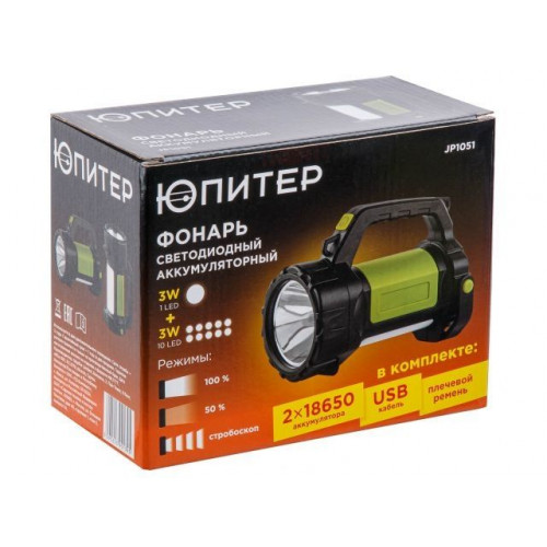 Фонарь светодиодный аккум. 3Вт+3Вт (зел.) ЮПИТЕР