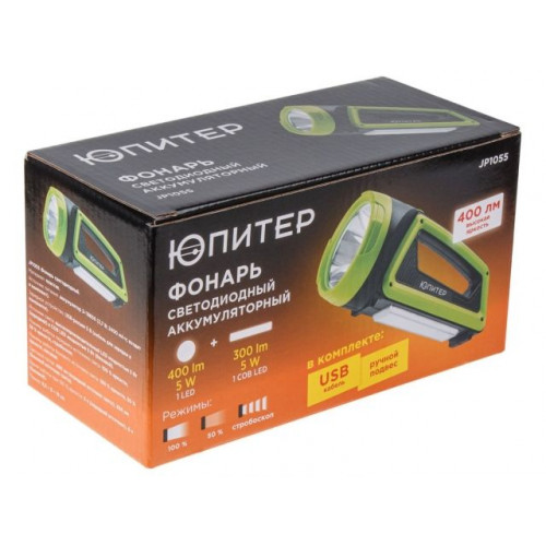 Фонарь светодиодный аккум. 5Вт+5Вт (зел.) ЮПИТЕР