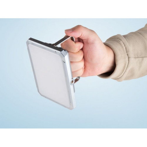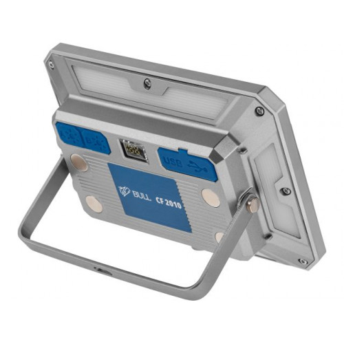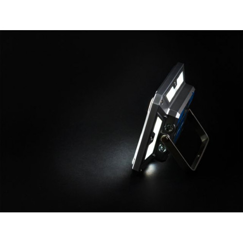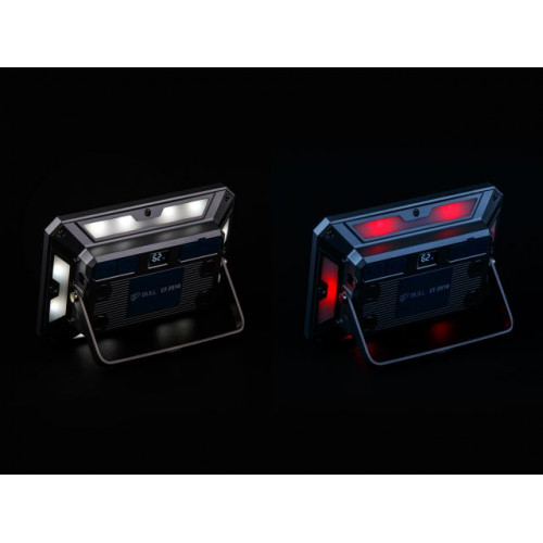 Модель обладает магнитами для крепления на металлической поверхности, а также передвижной опорной рукояткой. Имеет несколько источников подачи света: передний, боковой, задний, а также большое количество рабочих режимов: яркий белый, яркий теплый, красный, стробоскоп и др. При желании яркость можно регулировать путем удержания кнопки. Фонарь может выступать в качестве портативного источника питания, что особенно актуально при нахождении вдали от внешних источников питания. Также фонарь защищен от небольших брызг воды. Имеет встроенный аккумулятор. На оборотной стороне фонаря присутствует дисплей с отображением процента заряда аккумулятора, а также индикацией процесса зарядки. Имеет также разъем для крепления на штативах (1/4").