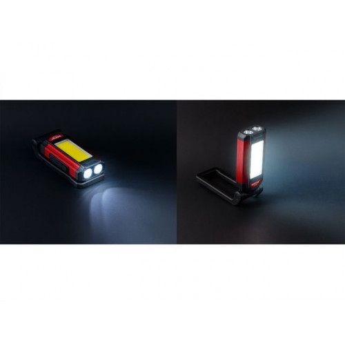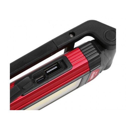 Фонарь светодиодный предназначен для освещения затемненных участков. Характерными преимуществами модели является то, что фонарь может крепиться к металлическим поверхностям при помощи встроенного магнита. Также важным бонусом является зарядка от USB Type-C (входит в комплект), также может выступать в качестве портативного зарядного устройства. Встроенный аккумулятор. Складная и поворотная конструкция. Имеет 2 источника передачи светового потока: фронтальный и боковой. Передает световой поток при помощи следующих режимов: 100% яркости, 50%, мерцание, 100% красный свет, мерцание красным цветом - для фронтального. 100%,50%, мерцание - для бокового.
