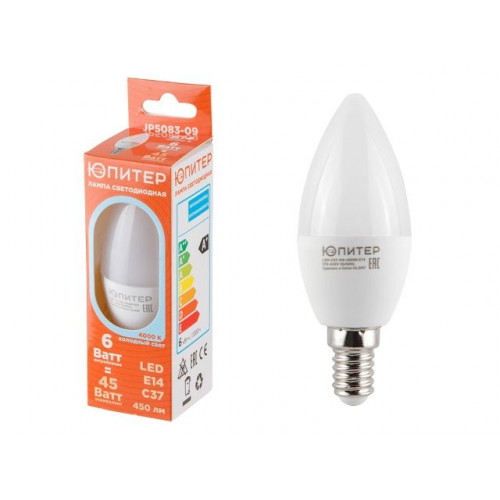 Лампа светодиодная C37 СВЕЧА 6 Вт 170-240В E14 4000К ЮПИТЕР