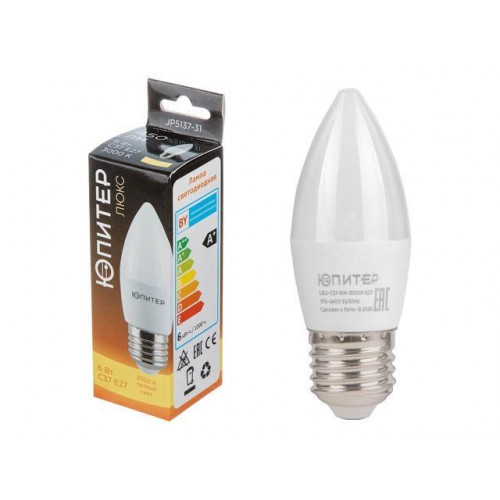Лампа светодиодная C37 СВЕЧА 6 Вт 170-240В E27 3000К ЮПИТЕР ЛЮКС