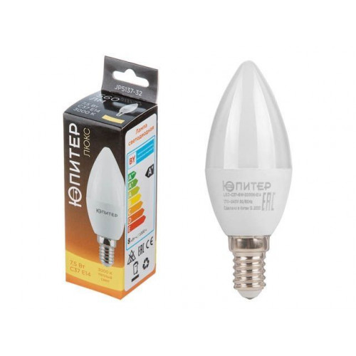 Лампа светодиодная C37 СВЕЧА 7,5 Вт 170-240В E14 3000К ЮПИТЕР ЛЮКС
