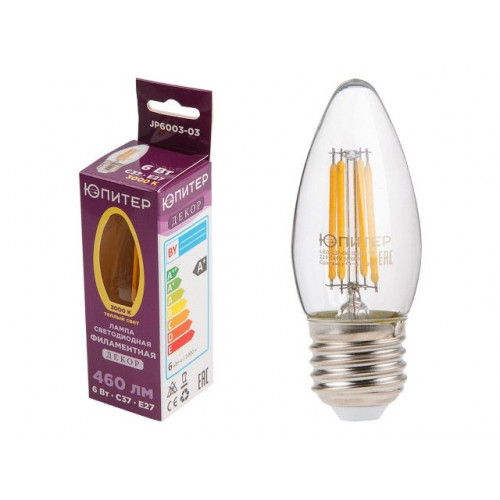 Лампа светодиодная филаментная C37 СВЕЧА 6 Вт E27 3000К ЮПИТЕР ДЕКОР