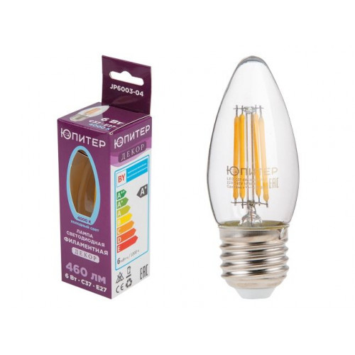 Лампа светодиодная филаментная C37 СВЕЧА 6 Вт E27 4000К ЮПИТЕР ДЕКОР